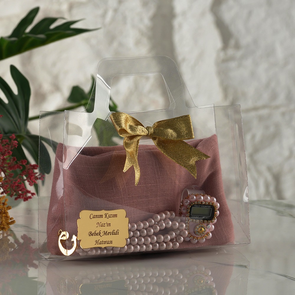 Asetat Çanta + Eşarp + İnci Tesbih + Zikirmatik