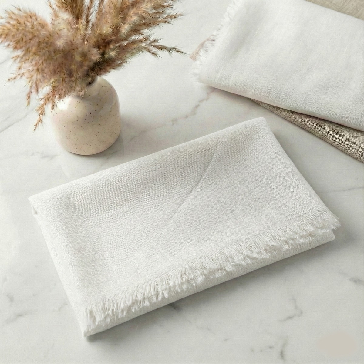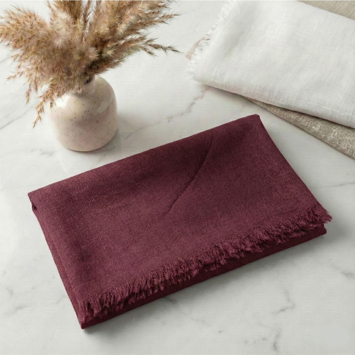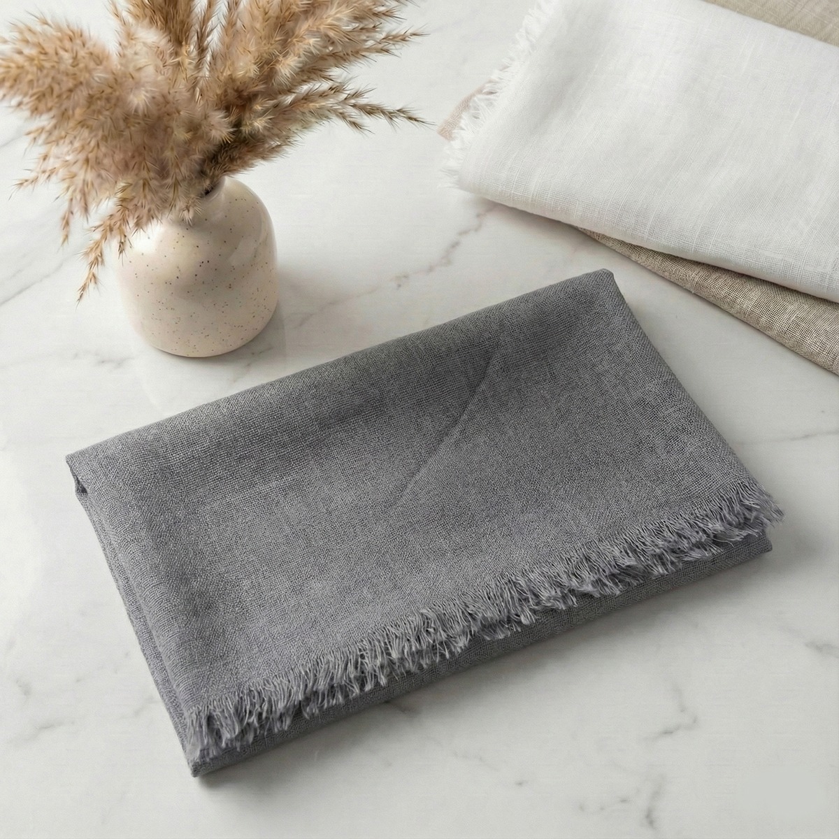 - Kenar Detayı: Şık görünüm sağlayan kendinden saçaklı kenarlar.